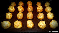 Remplir une poche à douille munie d'une douille unie, de pâte à choux. Formez des choux sur une plaque de cuisson en silicone ou recouverte de papier sulfurisé.Pensez à bien espacer les choux car ils vont gonfler.