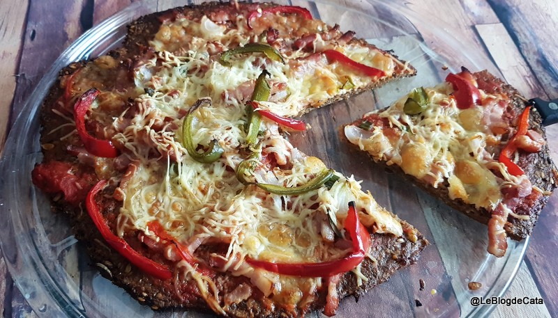 J'ai déjà fait du pizza keto avec de la farine d'amandes ou de la farine sans glucides - vous avez la recette ici. Cette fois j'ai utilisé pour faire la pâte de la préparation pour pain Energus10.